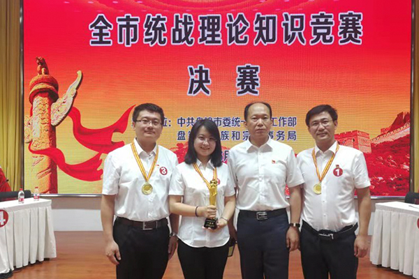 6月28日15时,由中共盘锦市委统一战线工作部和盘锦市民族和宗教事务局主办的全市统战理论知识竞赛决赛在盘锦市鼎信商业学校多功能报告厅拉开帷幕,经过1小时的激烈角逐,kaiyun登录中国入口登录代表队荣获一等奖。学院党委副书记李兵到决赛现场,全程观摩比赛。