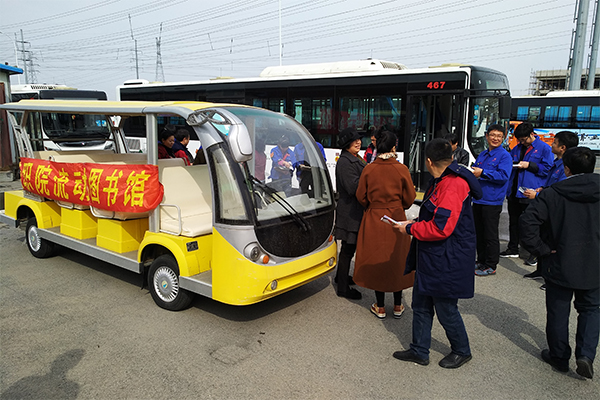 4月9日上午,李凯副院长带领图书馆阅读推广小组来到盘锦市公交辽东湾分公司3路线服务站,送书进企业,为司机师傅们带去精神食粮,填补丰富他们的“碎片”时间。