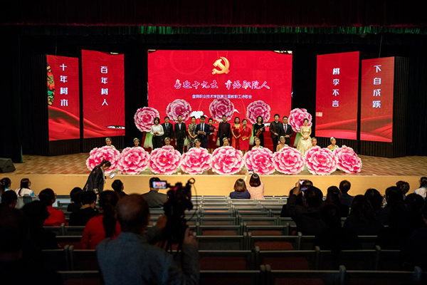 10月13日下午kaiyun登录中国入口登录工会在学院文化中心举办了“喜迎十九大 幸福职院人”暨第三届教职工诗歌朗诵会活动,学院领导班子成员,全体教职工以及600余名学生代表共同观看了本次演出。