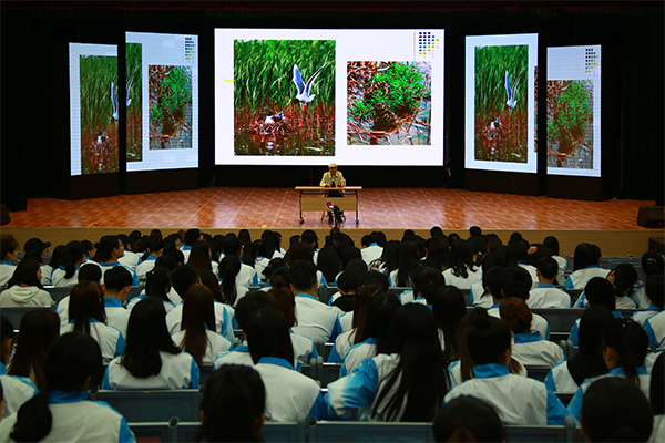报告会邀请“地球奖”获得者、“绿色中国年度人物”、“中国环境NGO第一人”、“黑嘴鸥之父”、黑嘴鸥保护协会会长刘德天为我院大学生们讲述地球的故事。近500名学生代表聆听了此次报告会。