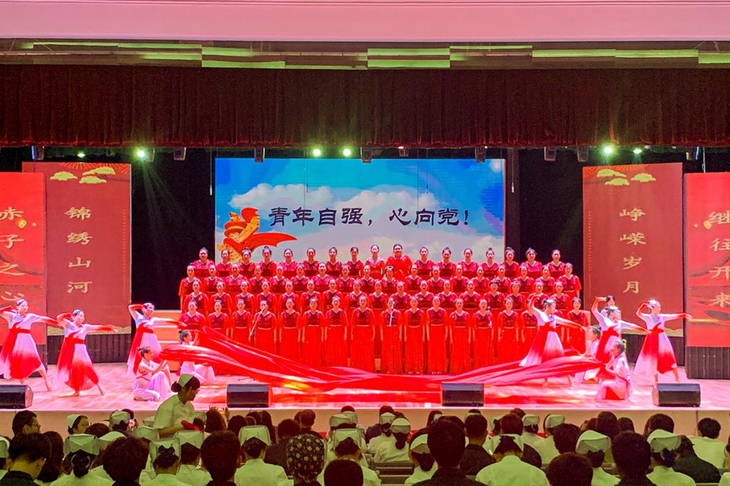 为庆祝中国共产党建党100周年,深入开展党史学习教育和红色主题教育,6月8日,由校学生工作处主办的“传唱红色经典,凝聚青春力量”校园红歌合唱比赛在文化中心演播厅举行。