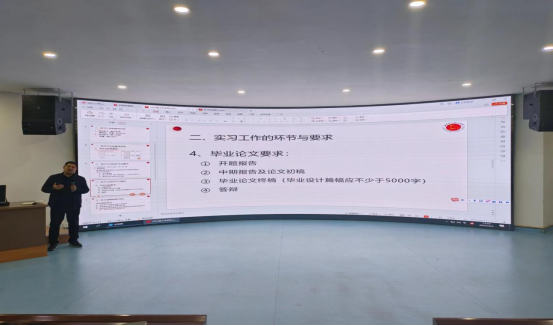 最后,孙伟老师对同学们提出几点希望。一是希望同学们珍惜实习时光,勤学慎思,高度重视;二是希望同学们能及时转换角色,锤炼品质,提高实践能力;三是希望同学们做好职业生涯规划,提升就业竞争力,为毕业后高质量发展奠定基础。